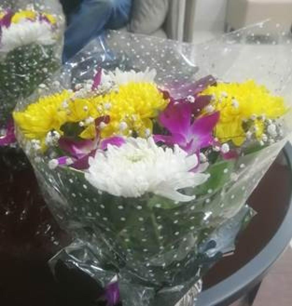 ↓インドの客先訪問でいただいた花束です↓